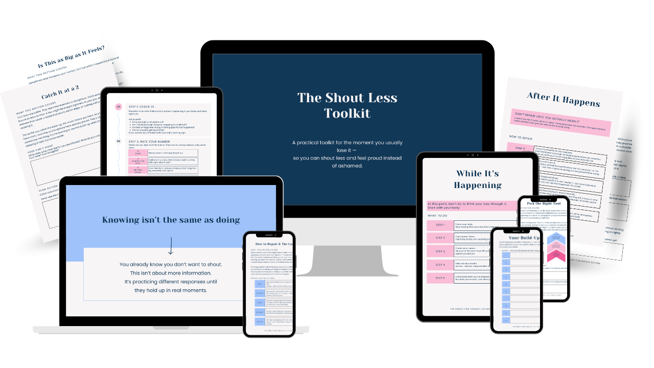 Tired of losing it with your kids: Get the FREE 7-Day Yell Less Reset and start shouting less today.